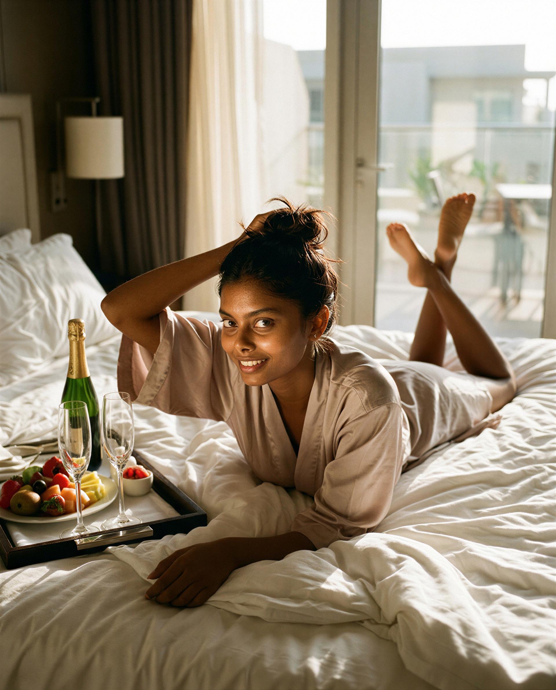 Esha JoshiLazy mornings & a little bubbly—just my vibe. 💋